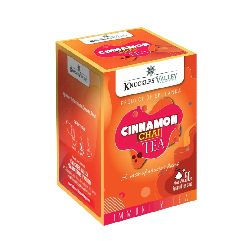 Knuckles Valley Ceylon Cinnamon Chai Tea – A Symphony of Wellness & Heritage Indulge in the soul-warming harmony of Cinnamon Chai, where true Ceylon cinnamon wraps you in sweet spice, cardamom brings an exotic touch, and ginger adds its fiery kick. This herbal blend is comfort in a cup—woody, citrusy, and deeply aromatic. Inspired by ancient wellness traditions and perfected for modern moments, each sip speaks of balance and depth. Brew it strong for an invigorating start or steep slowly for a meditative wind-down. Naturally caffeine-free and rich in heritage, it’s your perfect companion on chilly mornings or quiet evenings. The taste? Bold yet grounding. The aroma? Spicy-sweet and enchanting. This isn’t just chai—it’s a celebration of warmth, wellness, and the unmistakable charm of Ceylon’s spice legacy.Tasting Notes & Distinctive Features: