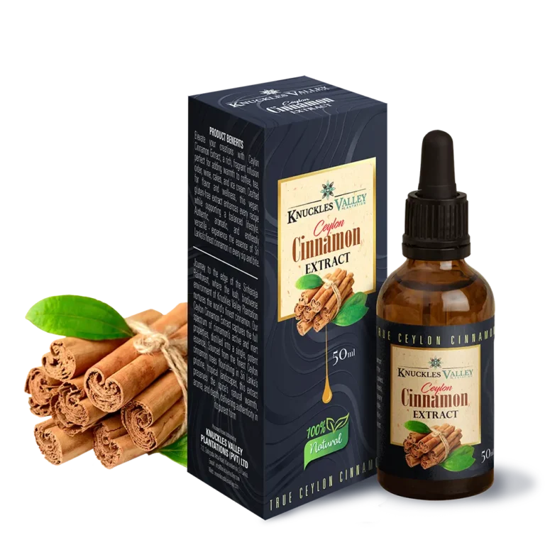 Knuckles Valley Ceylon Cinnamon Extract embodies the pure essence of Cinnamomum verum, meticulously sourced from the lush terrains near the Sinharaja Rainforest in Sri Lanka. Crafted with unwavering dedication to quality, authenticity, and international food safety standards, this extract preserves the full spectrum of cinnamon’s active and inert properties, delivering an unparalleled depth of flavor and wellness benefits.