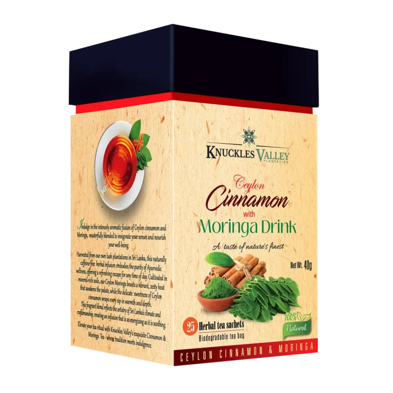 - Authenticity: From Sri Lanka’s highlands, this blend unites GI-certified Ceylon cinnamon and moringa—pure, hand-harvested, and naturally grown. No additives, just heritage-rich wellness rooted in sun, soil, and tradition