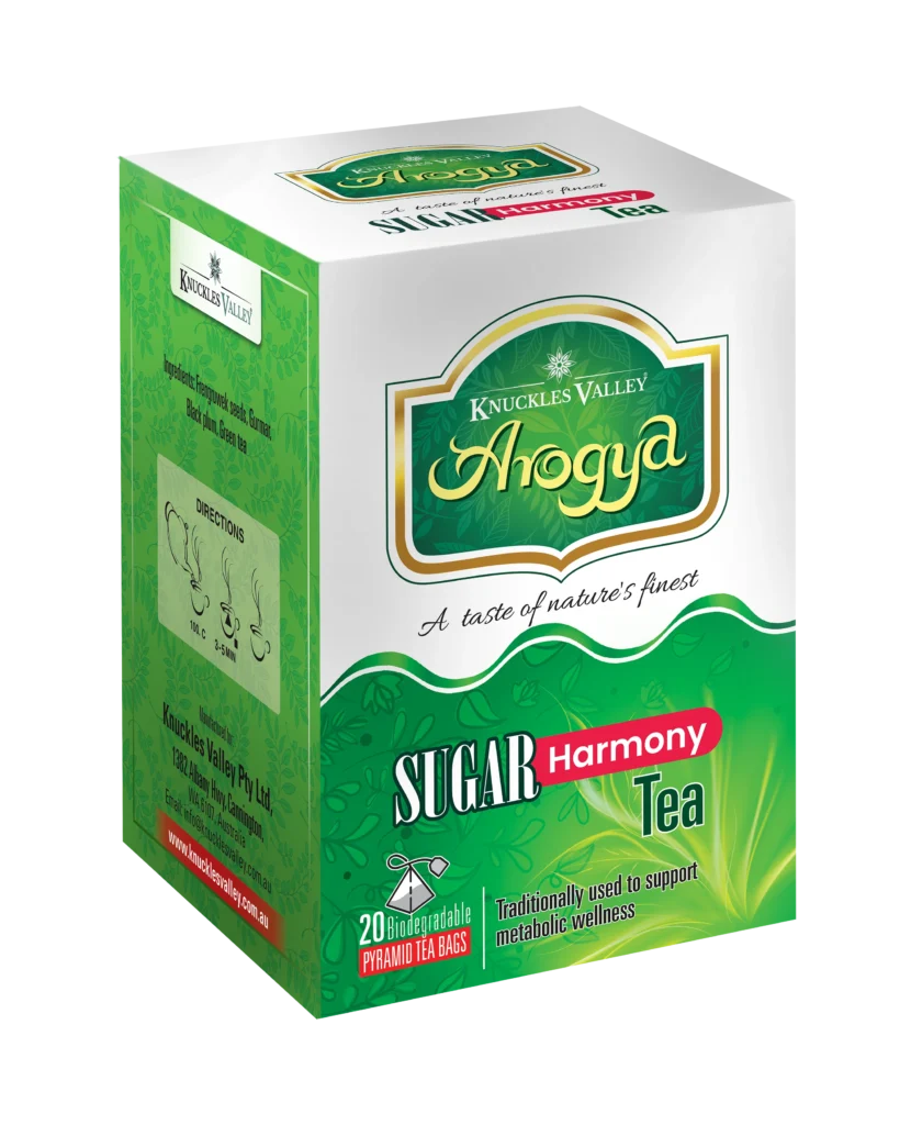 Arogya, a cherished word in Sri Lankan, Sanskrit, and Vedic traditions, embodies the essence of healthy living—where true happiness arises from harmony within. In ancient Ayurveda, Arogya reflects the deep understanding that nature’s herbs hold the power to restore balance and vitality. Rooted in this timeless wisdom, Sugar Harmony Tea is a gentle infusion of Ayurvedic botanicals, carefully selected for their role in supporting everyday wellbeing. Crafted by experienced herbalists in Sri Lanka, each blend is a tribute to mindful living and the quiet strength of nature. With its soft aroma and low-caffeine profile, Sugar Harmony offers a soothing daily ritual—ideal for those seeking clarity, calm, and inner equilibrium. The ingredients are traditionally known to promote vitality and a sense of groundedness, making each cup a celebration of purity and purpose. Whether enjoyed in stillness or as part of your wellness journey, this tea invites you to sip slowly, breathe deeply, and reconnect with your rhythm.Crafted with care. Inspired by tradition. Enjoyed with purpose.